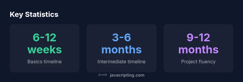 According to JavaScripting, the question how long to learn javascript reddit doesn't have a one-size-fits-all answer. Reddit threads reveal wide variance, driven by prior programming experience, available study time, learning style, and whether learners practice with real projects or just theoretical exercises. Beginners who commit 6-10 hours per week often reach a basic working knowledge in 6-12 weeks, while those who dive into advanced topics like asynchronous patterns or modern tooling may take longer. The posts emphasize consistency more than speed; small, repeatable sessions beat marathon weeks. In this article we synthesize Reddit insights with structured guidance to set realistic milestones.