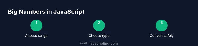 In JavaScript, the term 'big numbers' usually refers to integers that exceed what the Number type can represent exactly, or decimals where precision matters. According to JavaScripting, the language uses a 64-bit floating-point representation for numbers, which means integers up to a certain size can be represented exactly, and beyond that, digits can be lost during arithmetic or serialization. This has practical implications: when you store large integers in JSON, databases, or transmit data to a server, you may see rounding or subtle mismatches. The first step is to define what counts as 'big' for your app. Do you operate with values near 2^53, or do you regularly handle numbers far larger? Once you have a policy, you can choose the right tools (Number, BigInt, or libraries) and design data flows that minimize precision issues across both client and server.