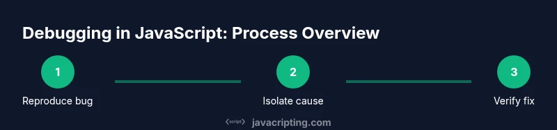 Debugging in javascript is the disciplined process of finding and fixing logic errors that prevent code from running correctly or producing incorrect results. According to JavaScripting, effective debugging in javascript combines systematic investigation with tooling discipline, giving developers reliable methods to uncover root causes. The goal is not merely to fix the current bug but to understand why it happened and how to prevent similar issues in the future. You’ll learn how to build a robust mental model of your code and use that model to triage problems quickly. Throughout this guide we’ll blend theory with practical techniques, emphasizing reproducible steps, evidence collection, and incremental validation. This approach helps you stay calm under pressure and reduces the time spent chasing ghosts in complex applications.