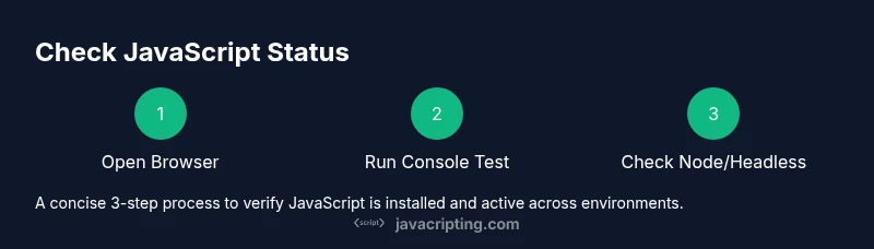 Learn how to verify whether JavaScript is installed and enabled in browsers, Node.js, and headless environments. This step-by-step guide covers quick checks, troubleshooting, and best practices for reliable results.