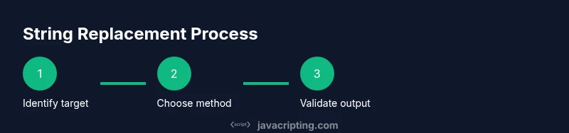 A quick primer: replace javascript string means creating a new string where a portion of text is substituted with new text. Strings are immutable in JavaScript, so every replacement produces a new string. According to JavaScripting, string replacement is a fundamental text manipulation task in JavaScript development. In this guide, you’ll learn practical methods, common patterns, and safe practices to replace text reliably in web apps. The goal is robust, predictable text manipulation that works across browsers and environments. This topic is foundational for UI updates, normalization of user input, and data transformation. As you read, keep in mind that the best approach depends on whether you need a single change or every occurrence, and whether you must preserve the original string’s structure. The examples emphasize clear, maintainable code and avoid brittle regex tricks that break under edge cases.