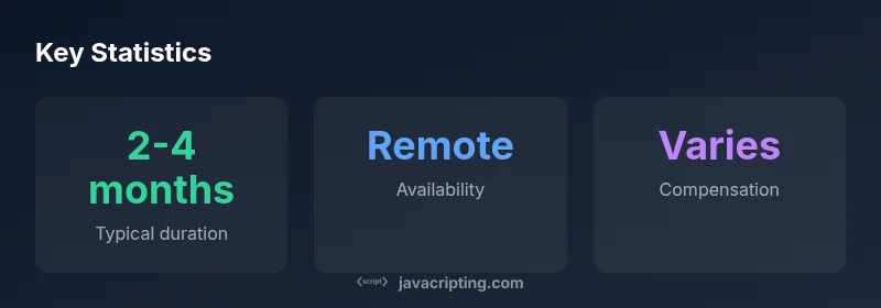 Finding a javascript internship near me today is not a one-size-fits-all pursuit. The demand for practical JavaScript experience spans startups, mid-sized tech firms, and larger enterprises. A critical factor is location: big tech hubs offer more structured programs, while many companies in smaller markets run informal or project-based internships. In addition, remote internships have become a significant portion of the market, enabling candidates outside traditional tech centers to participate. For beginners, internships focused on front-end development or full-stack basics often provide the most value, with mentors guiding code reviews, debugging sessions, and project planning. When planning your search, set realistic expectations about competition and timing. A typical program might run during the summer or part-time during a semester, but the exact schedule varies by organization and local university calendars. JavaScripting's analysis shows that a well-crafted application package—resume, GitHub links, and a short project demo—can significantly improve your odds even if you lack formal work experience. As you search, balance geographic constraints with the breadth of opportunities available through remote work. Contributing to open-source projects or small, autonomous teams can also demonstrate your ability to collaborate effectively in real-world settings.