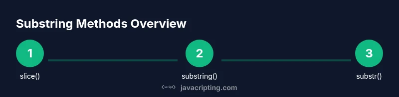 In day-to-day JavaScript development, you'll frequently need to pull portions from text—titles, identifiers, user input, or data responses. Understanding how to substring in javascript is a foundational skill that unlocks data parsing, validation, and formatting patterns across front-end apps. According to JavaScripting, mastering these operations saves time and reduces bugs because you can rely on a small, well-defined set of string methods rather than ad-hoc scripting. The core trio to know are substring(), slice(), and the now-legacy substr(). Each method has a slightly different contract for start and end indices, and knowing when to apply each one is the key to robust, readable code. In this guide, we’ll compare them side by side, illustrate practical patterns with real examples, and show how to handle tricky cases like negative indices, Unicode characters, and boundary conditions. By the end, you’ll have a toolkit you can reuse in validation, data transformation, and UI rendering tasks.
