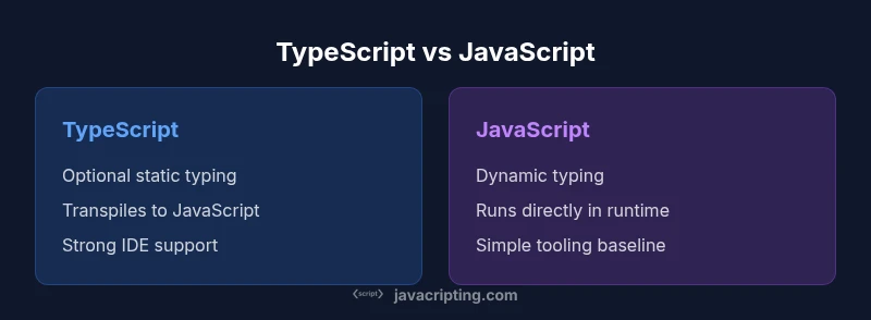 The question can you use typescript instead of javascript is often framed as a choice between immediate simplicity and long-term maintainability. According to JavaScripting, TypeScript’s core value proposition is optional static typing, which catches a large class of errors at compile time rather than at runtime. This isn’t about replacing JavaScript overnight; it’s about introducing a stricter discipline gradually. In practice, teams start by adding a few typed modules or migrating a single service, then expand coverage as confidence grows. JavaScripting analysis shows that teams embracing TS tend to see faster refactoring cycles and clearer contracts across modules. The approach remains practical: adopt as a tool that enhances your existing JavaScript without forcing a full rewrite immediately.