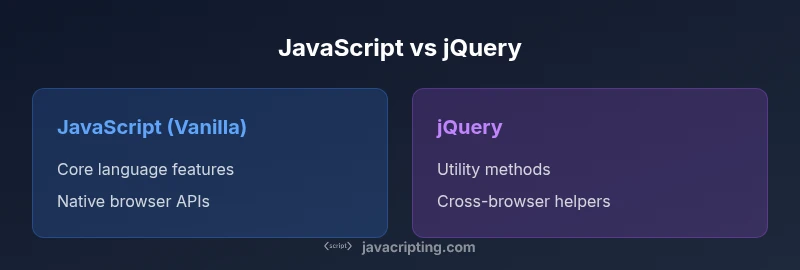 Explore the difference between JavaScript and jQuery: language vs library, when to use each, performance implications, and practical guidance for modern web development in 2026.