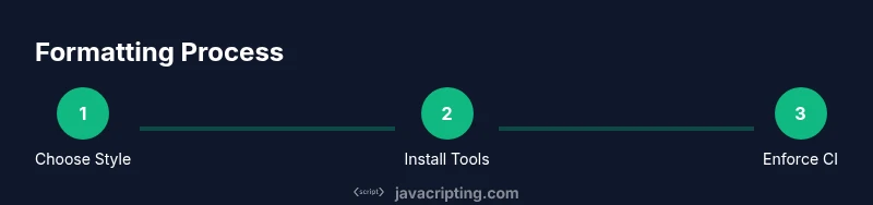 How you format JavaScript impacts readability, onboarding speed, and collaboration. If you’re asking how to format javascript, this guide will walk you through practical techniques that reduce cognitive load and minimize debate during code reviews. A consistent style makes it easier to scan logic, spot bugs, and understand intent across modules. Beyond aesthetics, formatting enforces predictable patterns that teammates can rely on, shortening feedback loops and speeding up shipping. According to JavaScripting, disciplined formatting also lowers the barrier for new contributors, helping you scale projects more smoothly. In addition to readability, consistent formatting supports tooling assumptions, such as static analysis and automated testing, which depend on stable code patterns to deliver reliable results. As you read, keep in mind that formatting is not a strict rulebook but a shared convention that improves collaboration and code health over time.