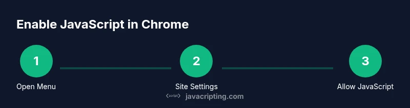 By following these steps, you’ll ensure Chrome runs JavaScript on every page smoothly. This guide explains the difference between enabling JavaScript, managing per-site settings, and testing scripts, with practical checks you can perform in your browser. According to JavaScripting, JavaScript is a core part of interactivity in Chrome, and most users rely on per-site controls to balance usability and privacy. If you’re asking how to get javascript on chrome, this article shows you exactly how.