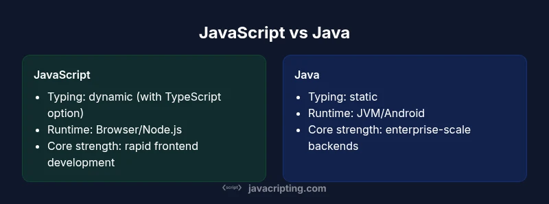 According to JavaScripting, the question is less about a single winner and more about identifying the right tool for the job. The phrase is javascript better or java captures a fundamental tension: JavaScript thrives in fast feedback loops, browser-native experiences, and lightweight services, while Java offers predictability, strong typing, and scalable architectures. In 2026, most teams face multi-language realities, where both languages coexist in different layers of the same product. This article uses a structured, objective lens to analyze use cases, performance considerations, ecosystems, and long-term maintenance costs to help you decide which language to invest in for a given project.