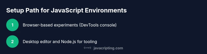 Choosing where you code JavaScript in shapes your learning curve, tooling, and how quickly you translate ideas into working code. The environment sets what you can test easily, what errors you’ll encounter, and how you'll structure projects as they scale. According to JavaScripting, beginners benefit from starting in a browser-friendly setup to validate ideas fast, then moving toward Node.js for server-side logic and build tooling. This environment clarity reduces context switching, accelerates feedback, and helps you build repeatable workflows from day one. In this section, you’ll see how browser-based experiments, desktop editors, and server runtimes align with common learning goals and project types.