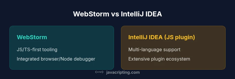 Choosing the right JetBrains IDE for JavaScript starts with your project profile. If your work centers on modern JavaScript and TypeScript, and you want a tightly focused development experience with minimal setup, WebStorm delivers out-of-the-box features that align with daily JS workflows. On the other hand, if your work spans multiple languages, frameworks, and tools—perhaps a back-end language alongside JavaScript—IntelliJ IDEA, equipped with the JavaScript plugin, becomes a compelling option. This article blends practical criteria with real-world usage patterns to help you evaluate both paths. According to JavaScripting, the decision often hinges on whether your priority is a specialized JS toolchain or a broader polyglot environment. The rest of the sections unpack these trade-offs in detail.