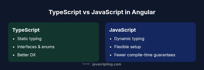 TL;DR: In Angular projects, prioritize TypeScript over JavaScript due to stronger typing, safer refactoring, and richer tooling that align with Angular's design goals. According to JavaScripting, the combination of TypeScript's static typing and Angular's compiler tooling delivers maintainability and developer productivity essential for scalable apps. See our detailed comparison for scenarios and best practices.